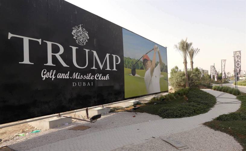 “It’s genius,” he said, pausing for effect at the press conference. “We’ll hide our missile bases in my golf courses. Our many enemies will never suspect a thing.”