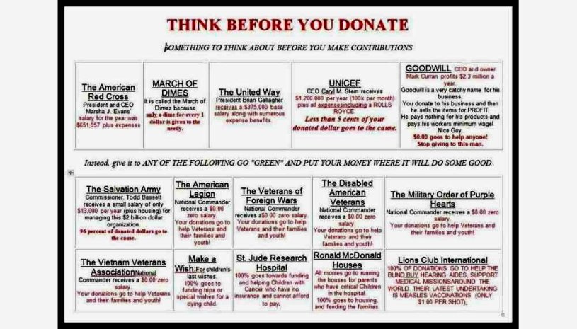 Every so often this meme goes around. You just want to believe it, that those charities are super evil and fronted by CEOs who take the donations directly to their pockets.