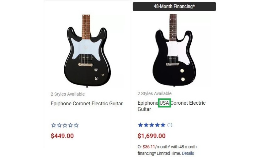 *The screenshots of guitar prices are recent (early 2025) and from musiciansfriend.com, a popular music retailer.